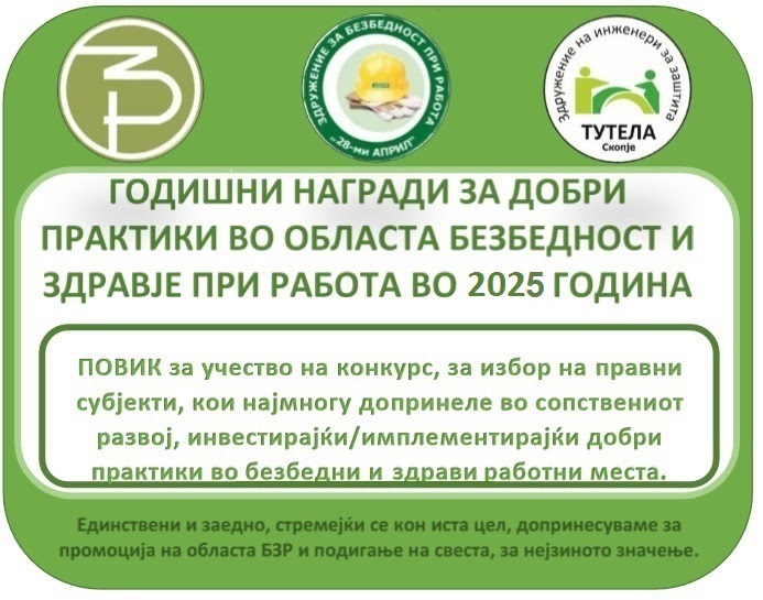 Ни претставува посебна чест, ДА ВЕ ПОКАНИМЕ, да земете активно учество со аплицирање, квалификување и во изборот, на најдобрите правни субјекти во 2025 година, кои реално и стручно, допринеле во сопствениот развој, инвестирајќи / имплеметирајќи добри практики во безбедни и здрави работни места.